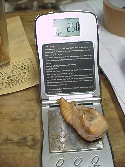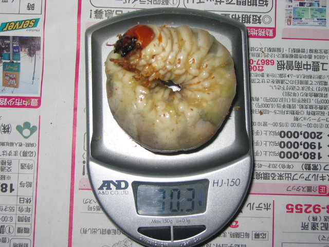 ホーペで33.5g幼虫出したことがありますがそれ以上に太く大きく感じました。